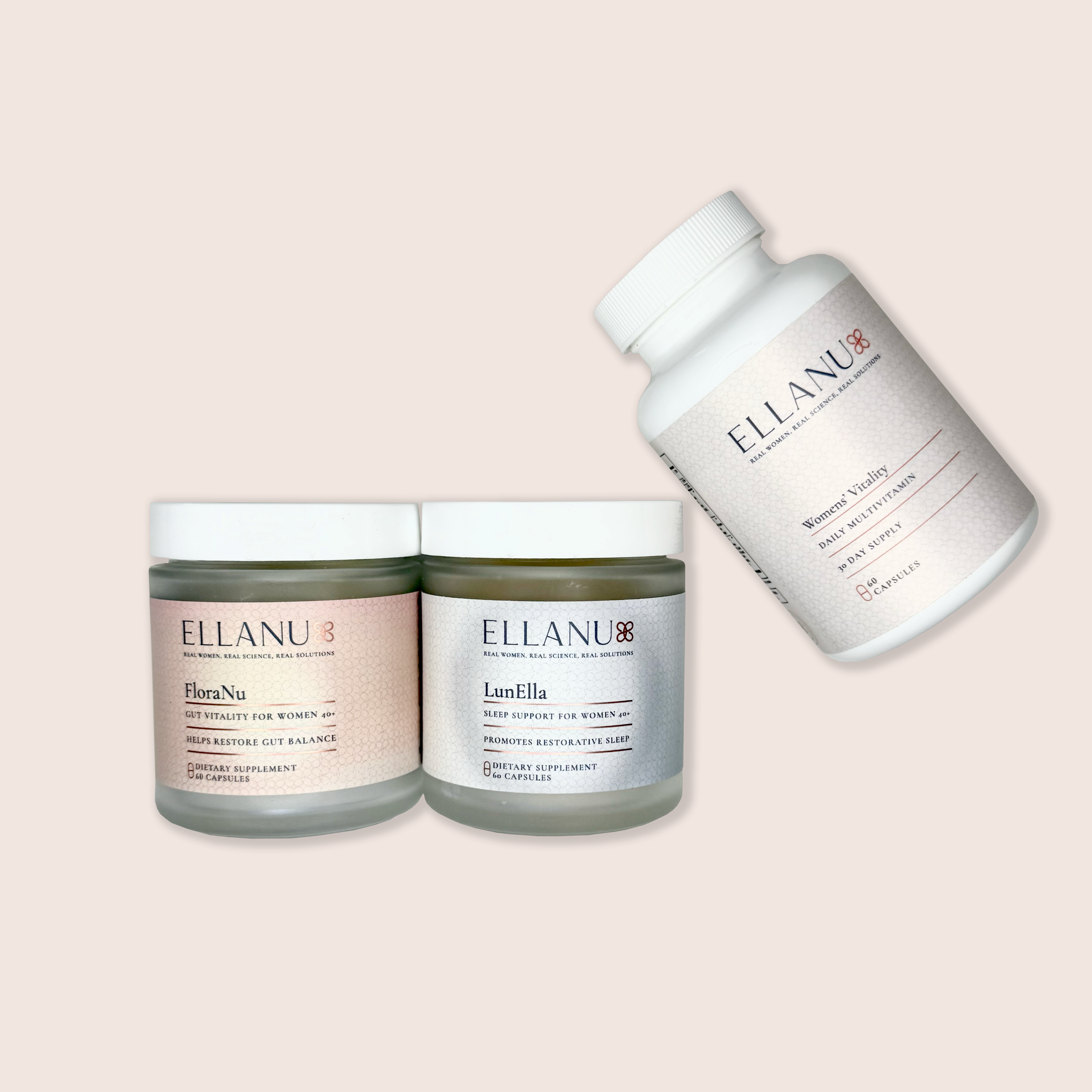 Meet your "fresh start and happy ending" best friend. The Rest & Reset System focuses on helping you begin and end every day with vitality.  Your system includes LunElla Sleep Support to help with mood and relaxation so you can wind down and sleep better and FloraNu Gut Health Support for Women 40+ to get every day off to the right start. A healthy gut is a happy gut!